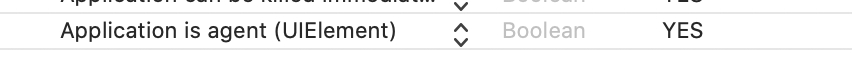 To disable the dock icon, open the Info.plist file of the project and add Application is agent (UIElement) as a new key and set its value to YES.